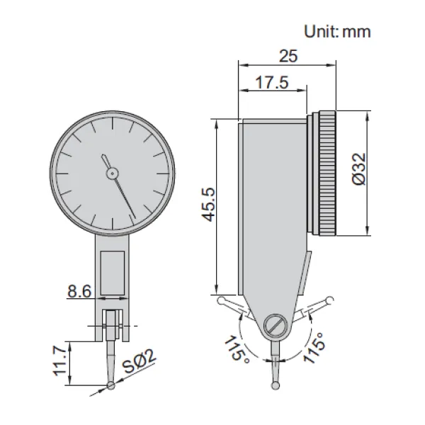 Đồng hồ so chân gập Insize 2895-08